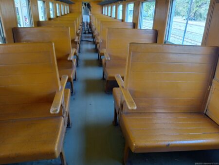 とりあえず乗り込んで車両を観察。こちらの椅子席は木造。誰も座っていないw