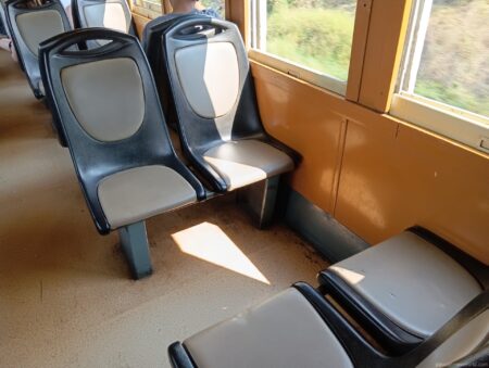 こんな席の車両もあった。欧米系の観光客はこちらに集まっていた。