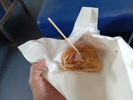 タイの焼きそばパッタイがやってきた。1個10バーツ(44円)と激安。