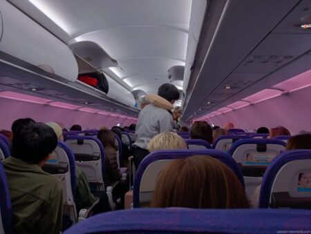 機内はほぼ満席。まもなく上海到着だ。