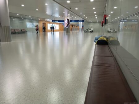 深夜の飛行で早朝到着。さすがに眠いのでこちらの長椅子でしばし仮眠。すでに先客がおり熟睡している。