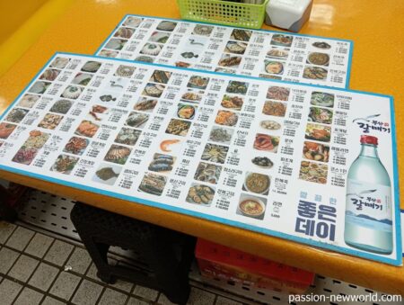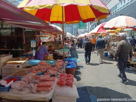 釜山最大の海鮮市場であるチャガルチ市場。10~20年ほど前は安くてうまい、その名の通り韓国海鮮料理の総本山にして頂点に君臨していた。新東亜水産物総合市場内にひしめきあう鮮魚売り場は、生け簀の中の魚や貝、えびを選んでお任せで調理してもらう、というシステム。当時は手長だこの刺身であるサンナッチ、 韓国では大変ポピュラーな白身魚のクロソイ(우럭:ウロッ)、ナマコなどメインどころはほぼ2~3万ウォンほどだった。ビール、焼酎は3000ウォン。3000円もあればおなかいっぱいになりかなり酔いが回るほどお得感があったが、値段が次第に上昇し、昨今はきちんと値段交渉しないと“ぼったくり”被害にあうほどだ。