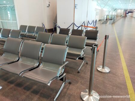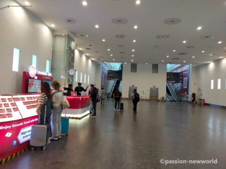 上の写真左は乗り換えゲート。同右は入国審査に進む通路。筆者はこちらに向かった。