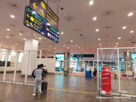 自宅に忘れものをしたことで羽田空港第3ターミナルに到着したのは午後10時35分。エアアジアのカウンターにはもう誰も並んでいない。心配しつつパスポートを見せるとすんなりとチェックインできた。係員の女性に聞くと「出発1時間前でカウンターを閉めます」という返事。けっこうギリギリだった。ホッとしていたら「こちらの席は非常口の隣なので緊急時には避難のお手伝いをお願いします」と言われた。