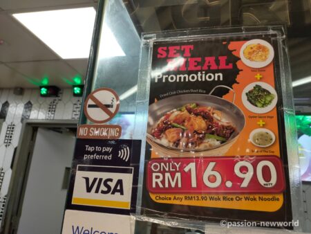 無事入国審査を通過するとそこはマレーシア。空港内には広々としたフードコートがあり各地の料理が食べられる。プロモーションの定食が16.90RM(約515円)だったので注文。