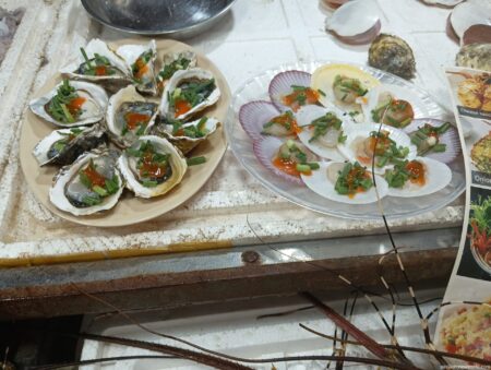 こちらのお店はホタテ、アサリ、エビ、マテ貝、イカ、タコなどのセット。