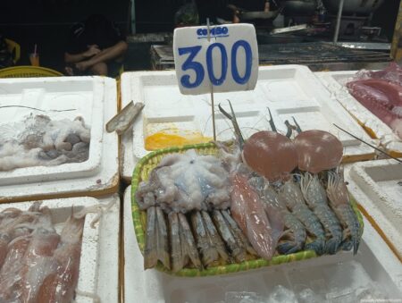 調理法が基本的にグリルと油炒めではあるが、いろいろな種類を食べられて満足度は高かった。しかも、ナイトマーケットという開放的な空間でガツガツ食べるのも野趣に富んでいて貴重な観光体験だ。マーケットの熱気を感じながらの屋台シーフード。オススメです。