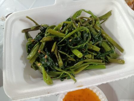 さて、こちらもサービスで付け足してくれたモーニンググローリーのニンニク炒め。炒め方が上手でクタっとしていない。ナンプラーの塩味も薄すぎず,濃すぎず、いいバランスだ。