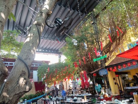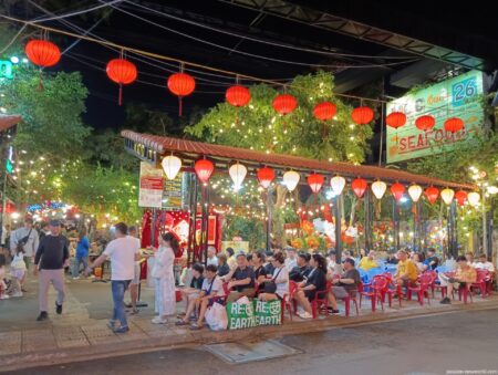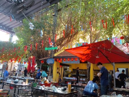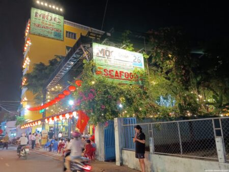 ダナンでも特に人気のシーフードレストランがここHải sản Mộc quán (モックシーフード )。ビルの上の方にまで看板が出ていて目立つ。