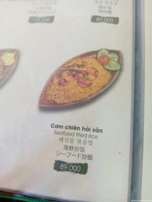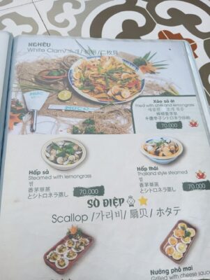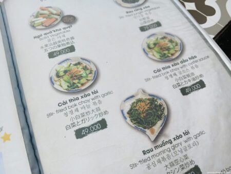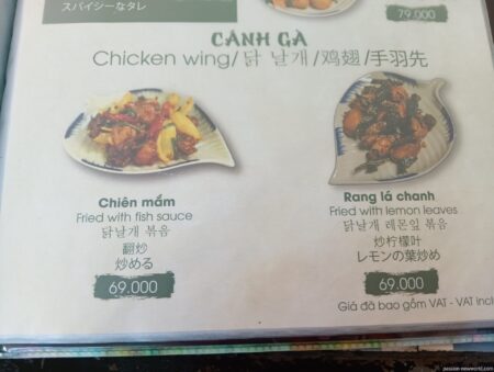まずは2品を注文。メニューはベトナム語、英語、韓国語、中国語、日本語対応。日本語はやや怪しいw。