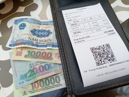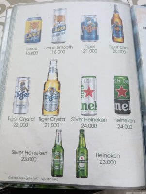 お会計はアサリ炒め、青梗菜炒め、ビール1本、3品合計で13万5000ドン(約800円)。信じられない値段!感激でしばし唖然!! これなら人気が出て当然だ。
