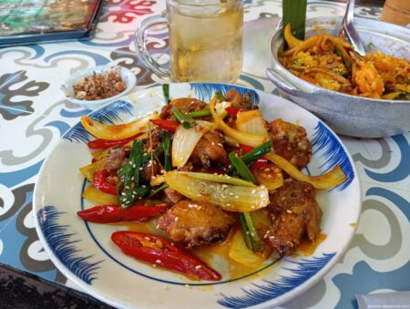 前日、隣席の韓国人ファミリーが肉料理をおいしそうに食べていたのでシーフード以外も美味しいのではないかと思い、チキン料理とチャーハン系を注文。