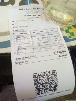 お会計は17万4000ドン。日本円で1200円ほど。おそらく量は2人分はあるので2人で行けば1人600円という激安ぶり。