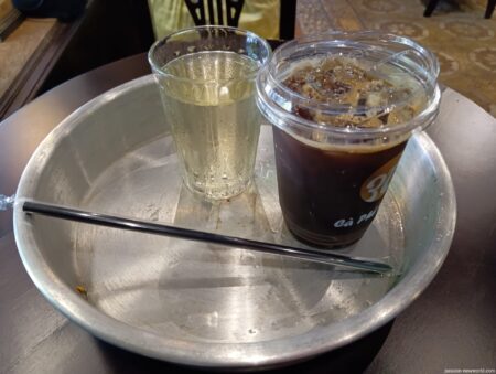 アイスコーヒーを注文すると、ベトナム茶も付いてくる。