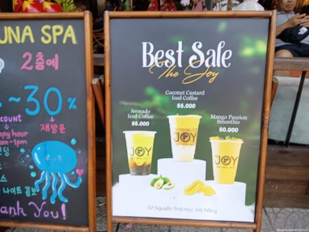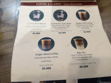 コーヒーは3万9000ドン(約240円)から。