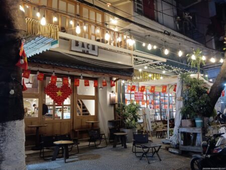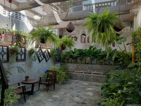 「Ut Tich Cafe(ウット ティック カフェ)」から徒歩5分ほどの路地の角にひっそりと佇む素朴なカフェだ。観光客もここまではやってこない。地元の若者たちが主な客層のようだ。