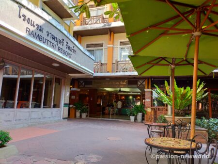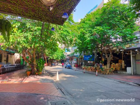 Thanon Taniをさらに進み右折してRambuttri Alleyに回り込み西方向に進む。緑が上を覆い暑さがやわらぐ。どんちゃん騒ぎのカオサンとは一転、心が落ち着く静かな空間が広がっている。