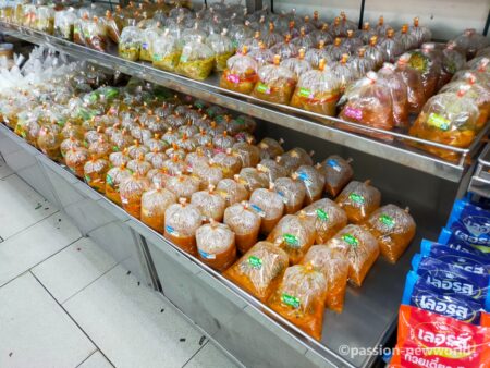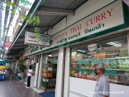 「NITTAYA THAI CURRY」店。豊富な種類のカレーが並んでいる。どんな食材を使っているのだろう。どれも美味しそうだ。