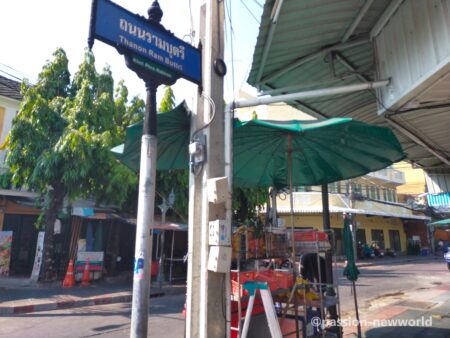 早朝から快晴のカオサン。ぐんぐん気温が上昇中。灼熱が襲う前に宿泊先のランブットリー ヴィレッジ ホテル周辺を歩いてみた。午前8時頃にホテルを出てChakrabongse Roadを渡る。