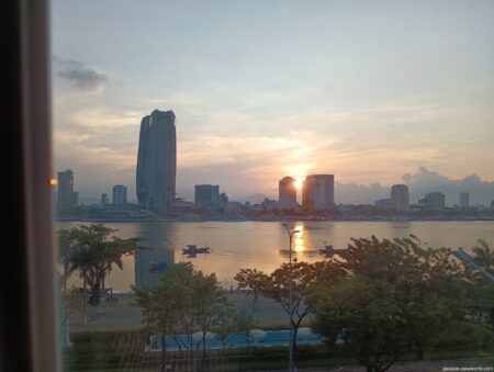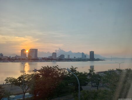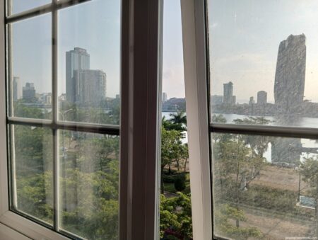 ダナンのハンリバー(川)が見渡せる立地条件の良い高層ホテル。高層階をリクエストしたが、5月の連休中とあって3階の部屋が割り当てられた。