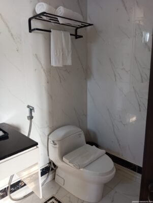 トイレは離れた場所なのでシャワーの水で濡れることはない。タオルは新しくシミなどの汚れはまったくない。