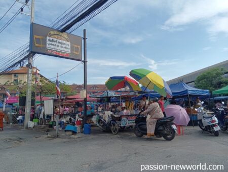 昼頃、ロンポー市場をのぞいたら朝出ていた店はきれいさっぱり姿を消していた。夜になるとまた別の店舗が出そろうという。