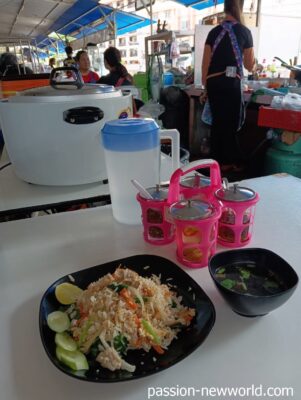 テイクアウトしてホテルの部屋で食べることも考えたが、この朝市の雰囲気にもう少し浸っていたい。そこですでにオープンしている食堂を利用することにした。