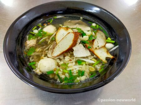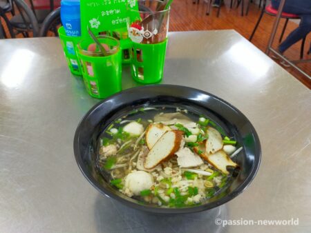 タイ語はクイッティアオ。タイの人々が愛する国民食なのでパタヤのあちこちに屋台が出ている。注文して5分足らずで出来上がり。緑の野菜と透明なスープのコントラストが食欲をそそる。