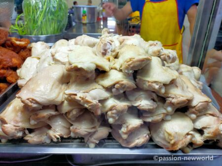 英国紳士も絶賛する小さな食堂。店頭のワゴンには蒸した鶏肉と揚げた鶏肉がうまそうに山積みにされていた。次回はぜひこちらを食べてみたい。