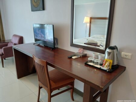 極めてお気に入りだったゴールデンシー・パタヤだが、今回はややハズレを引いてしまったかも。次回からは宿泊予約する際、リクエスト欄に「ベランダのスペースの半分を書斎にしている部屋をお願いします」と書き足すことにした。