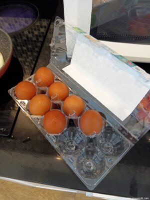 宿泊先で朝食を用意 卵は不可欠