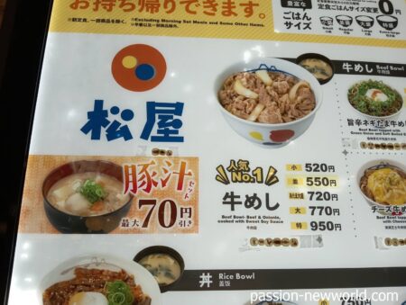 松屋の牛丼。並は550円と通常店より割高。空港内だから特別料金なのだ。とはいってもべらぼうな値段ではない。