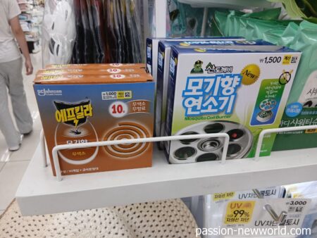 まず目についたのは蚊取り線香とその容器。それぞれ1000ウォン(約100円)と1500ウォン(約150円)だ。いかにも夏らしい。