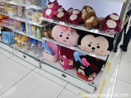 ぬいぐるみのコーナー。巨大な顔のぬいぐるみ。いったい誰が買うのだろうか?小さめのぬいぐるみはどれも可愛い。