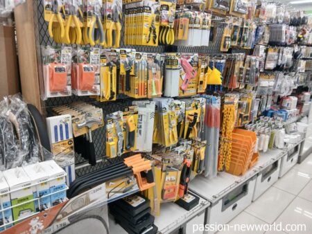 さらに進むと工具のコーナー。こういうのは日本のダイソーにはない。韓国ではDIYのホームセンターなどがあまりないため、ダイソーで販売しているのだろう。ペンチ、カッター、ノコギリもあった。