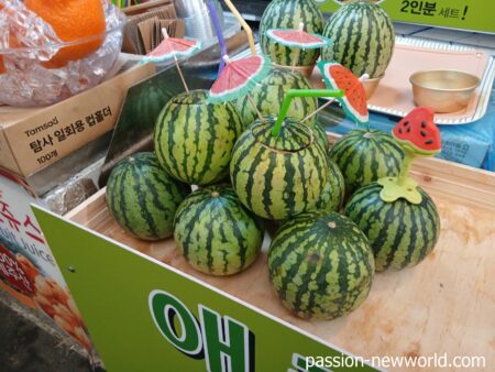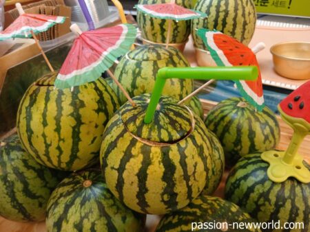 他にもスイカのスムージーを出す店も。この傘が映えるwww