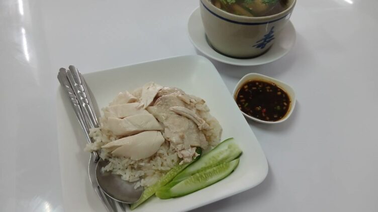 【タイ編】 ホアヒン・朝から大人気のカオマンガイ スープは胃にしみこむ絶品の味 計90バーツ カオマンガイは鶏肉の見にしっかり味がついていてしかも身がほろほろとほぐれ極上の味わい。ご飯にも鶏肉の旨さがしみ込んでおり味に深みがある。スープの中には鶏肉と野菜類。菜の花だろうか。アスパラガスをじっくり煮込んだようにも見える。胃にスーッとしみとおるような繊細な味わい 2025.09.01 【タイ編】Food